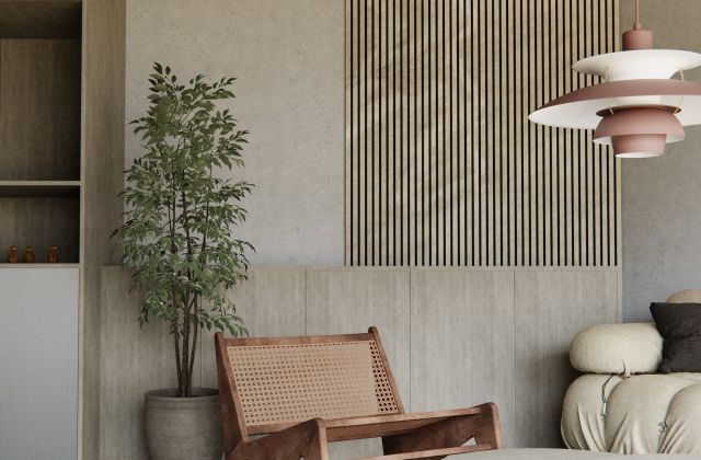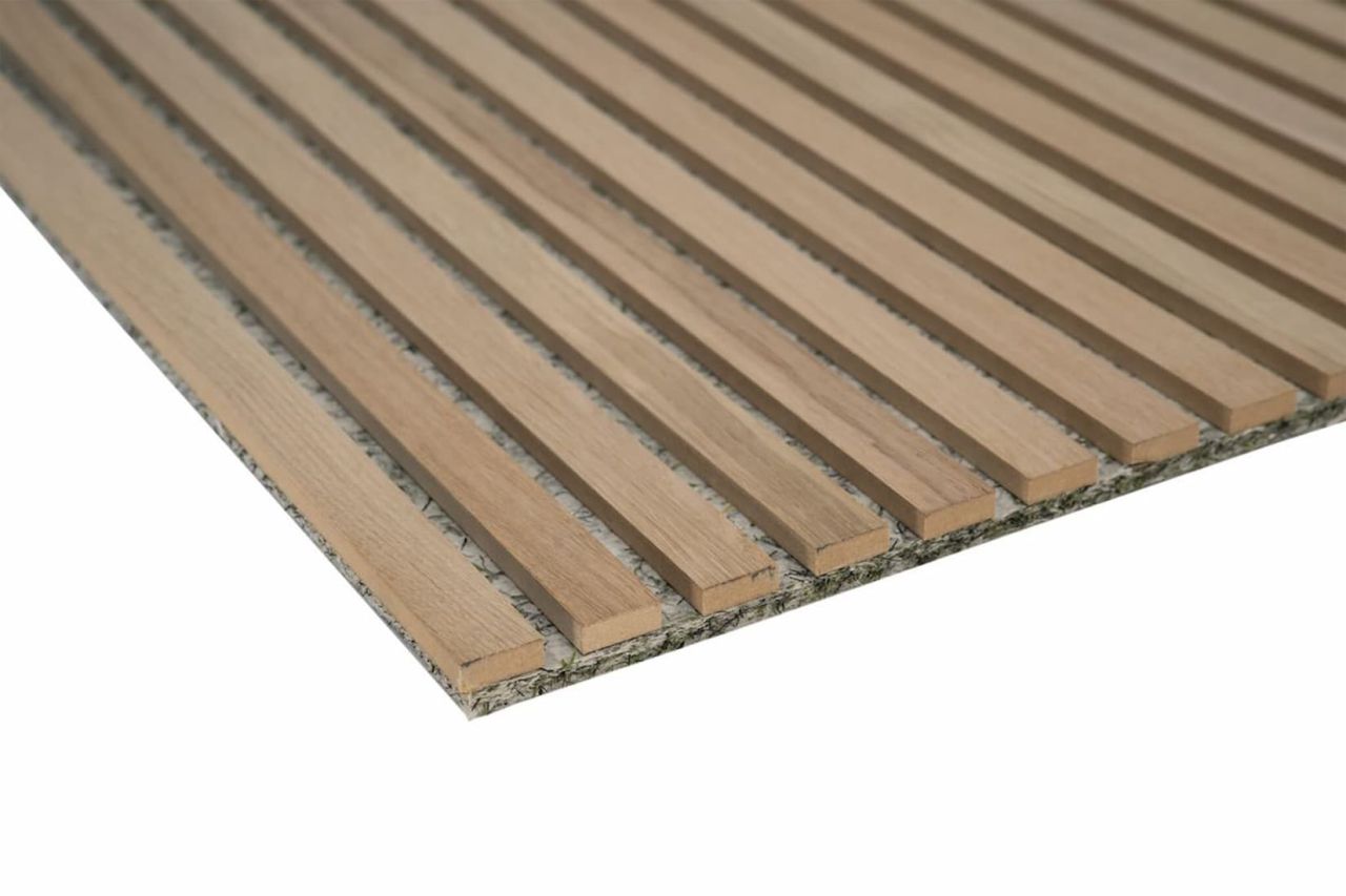 Cechą szczególną naszego panelu Upcycled Turf jest filc, który jest wykonany w 65% z przetworzonej sztucznej trawy, ciętej na małe kawałki, a następnie przetworzonej w filc, któremu nadaje piękny i niepowtarzalny wygląd. Ponadto, lamele są montowane z okleiną z prawdziwego drewna z przodu. Oznacza to, że mogą wystąpić różnice w wyglądzie okleiny, ponieważ drewno jest materiałem naturalnym.