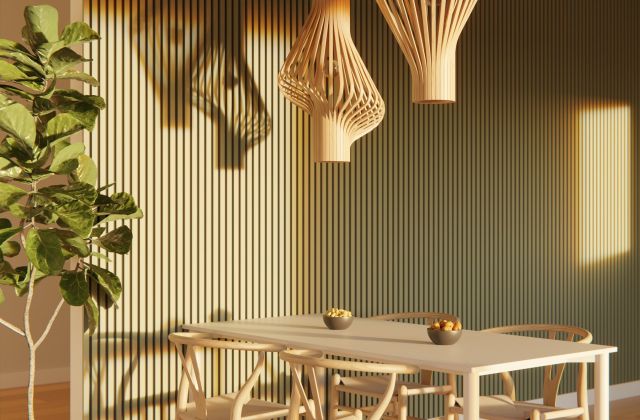 W BY VENØ produkujemy w Danii ekologiczne panele akustyczne z certyfikatem FSC®, skrupulatnie zaprojektowane w celu wzbogacenia akustyki pomieszczenia. Panele akustyczne GreenOption oferują tę samą niezwykłą wydajność akustyczną, co zawsze, a teraz są dostępne w jeszcze bardziej zrównoważonym materiale z niezwykłym podkładem filcowym pochodzącym w 65% z recyklingu.